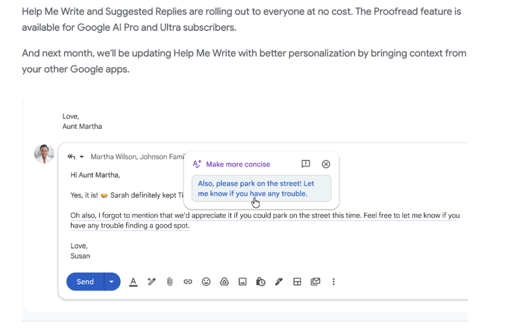 โดยฟีเจอร์ Help Me Write และ Suggested Replies ใช้ได้ฟรีสำหรับทุกคน ส่วนฟีเจอร์ Proofread สำหรับสมาชิก Google AI Pro และ Ultra