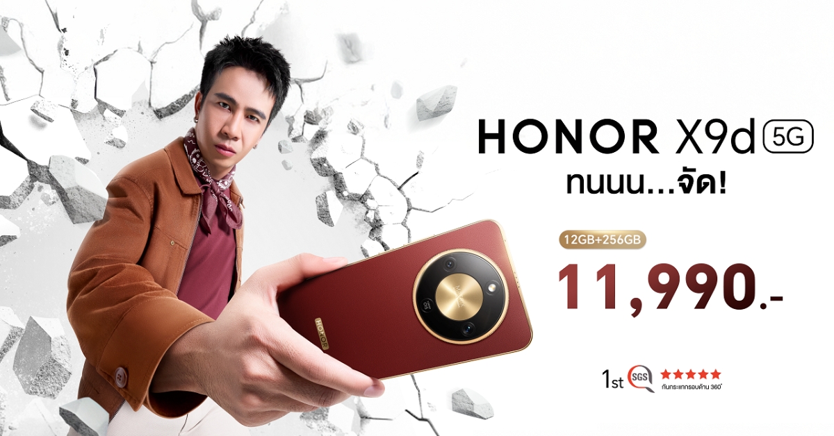 HONOR เปิดตัว HONOR X9d 5G สมาร์ตโฟนระดับกลางที่เน้นความทนทานขั้นสุดเป็นจุดขายหลัก มาพร้อมแบตเตอรี่ขนาด 8,300mAh ใหญ่ที่สุดในตลาดปัจจุบัน ประสิทธิภาพกล้องที่ครบ และความสามารถทนสภาพแวดล้อมหนักๆ ระดับตัวจริง เหมาะสำหรับผู้ใช้ที่ต้องการมือถือที่ไว้ใจได้ทุกสถานการณ์