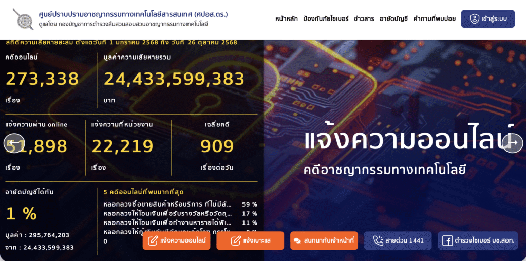 - 2.2 – แจ้งความออนไลน์ ที่ศูนย์ปราบปรามอาชญากรรมทางเทคโนโลยีสารสนเทศ (ศปอส.ตร) ดูแลโดย กองบัญชาการตำรวจสืบสวนอาชญากรรมทางเทคโนโลยี โดยเข้าเว็บไซต์ www.thaipoliceonline.com โดยเร็วที่สุด หรือโทรสายด่วน 1441