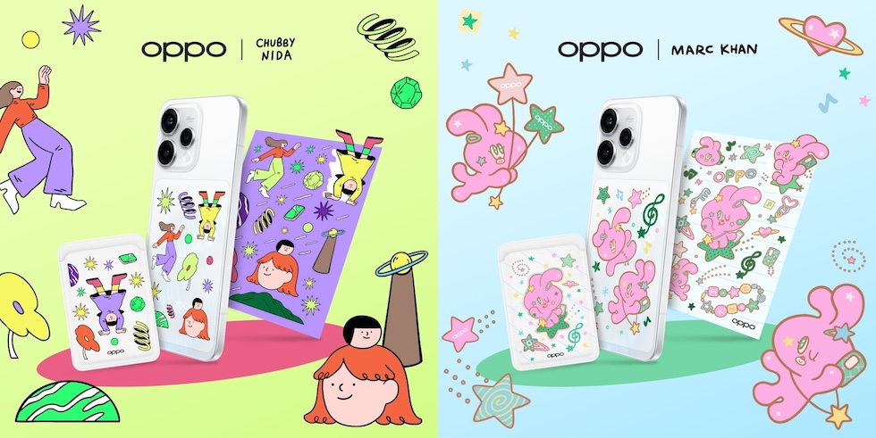 ความพิเศษในครั้งนี้ OPPO ได้จับมือกับ 2 ศิลปินไทย ได้แก่ คุณนิดา – Chubbynida เจ้าของคาแรกเตอร์เด็กหญิงผมแดงสุดยูนีคกับลายเส้นที่เป็นเอกลักษณ์ และ คุณมาร์ค – MARC KHAN เจ้าของคาแรกเตอร์กระต่ายสีชมพูที่โดดเด่นด้วยสไตล์สดใสขี้เล่น มาร่วมสร้างสรรค์ผลงานคอลแลปภายใต้ธีม “Young & Free” ที่ถ่ายทอดความสดใส และความรู้สึกเป็นอิสระในแบบของคนรุ่นใหม่ได้อย่างลงตัว