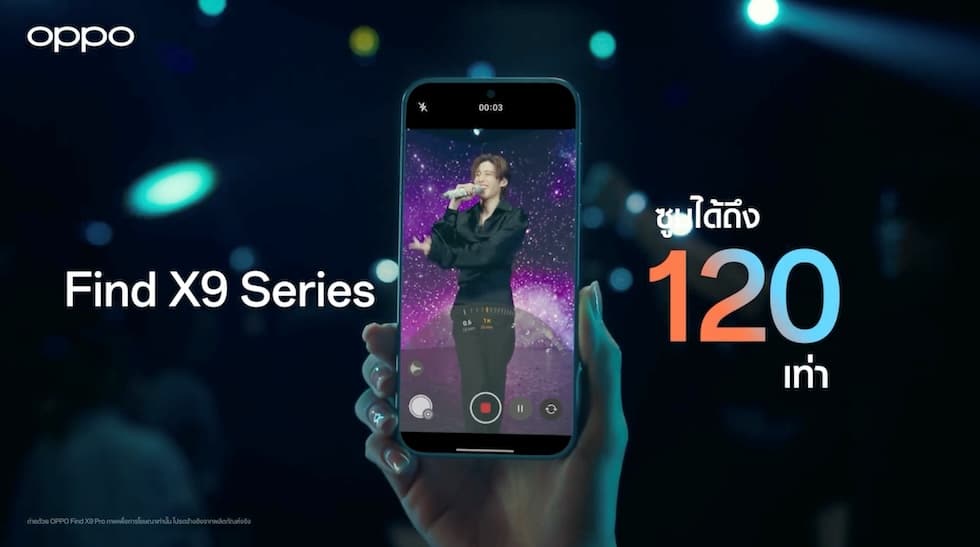 ออปโป้ ไทยแลนด์ ตอกย้ำประสบการณ์ใช้งานที่เหนือกว่า เตรียมส่งสมาร์ตโฟนแฟลกชิปที่สุดแห่งปี OPPO Find X9 Series สมาร์ตโฟนซูมดีทุกคอนเสิร์ต ด้วยการมาของกล้อง 200MP Hasselblad Telephoto คมชัดทุกการถ่ายภาพ ตอบโจทย์ทุกสายคอนเสิร์ต มาพร้อมดีไซน์ใหม่สะท้อนความพรีเมียมในทุกสัมผัส ด้วยขอบหน้าจอบางเฉียบ จับถือถนัดมือ พร้อมปล่อยวิดีโอตัวอย่างซูมคอนเสิร์ตด้วยกล้อง 200MP Hasselblad Telephoto และพลังซูมไกล 120x Super Zoom