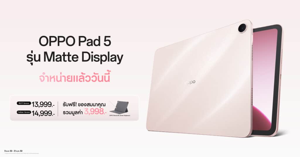 สำหรับลูกค้าที่ซื้อ OPPO Pad 5 ในวันนี้ – 31 มกราคม 2569 จะได้รับของสมนาคุณพิเศษ ดังนี้